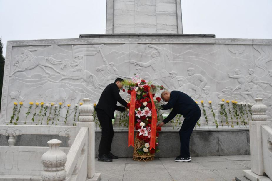 2.向革命烈士敬獻花籃。隨后進行了向新中國成立英勇獻身的革命烈士敬獻花籃儀式。全體黨員、入黨積極分子莊嚴肅立,依次進行了湊唱國歌、向烈士致敬、默哀,敬獻花籃,向町店戰斗烈士紀念碑行鞠躬禮等。高高聳立的烈士紀念碑,將永遠銘記著我們對革命烈士的思念和緬懷,引領我們踏著革命烈士的足跡奮勇前行。