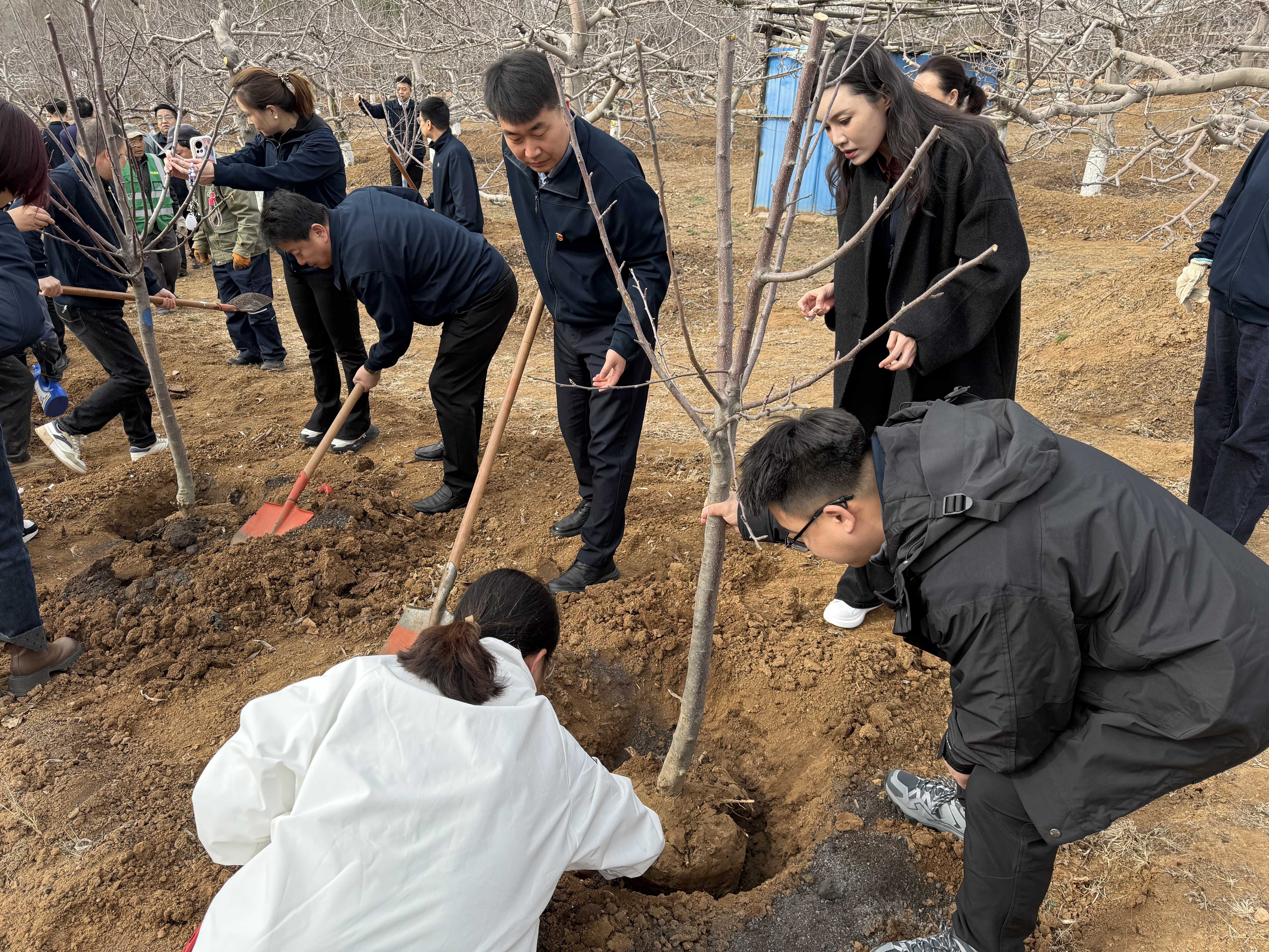 活動現場,國投園林公司為大家提供了樹苗和種植工具,還配備技術員從旁協助,各黨員熱情高漲,有的揮鍬鏟土,有的扶苗填坑,有的提桶澆水,大家齊心協力,相互配合,每個人的臉上都洋溢著滿足和喜悅的笑容。經過一上午的辛勤勞作,新栽種了十余株蘋果樹苗、養護了十余株紫薇樹,學習了樹木種養知識。