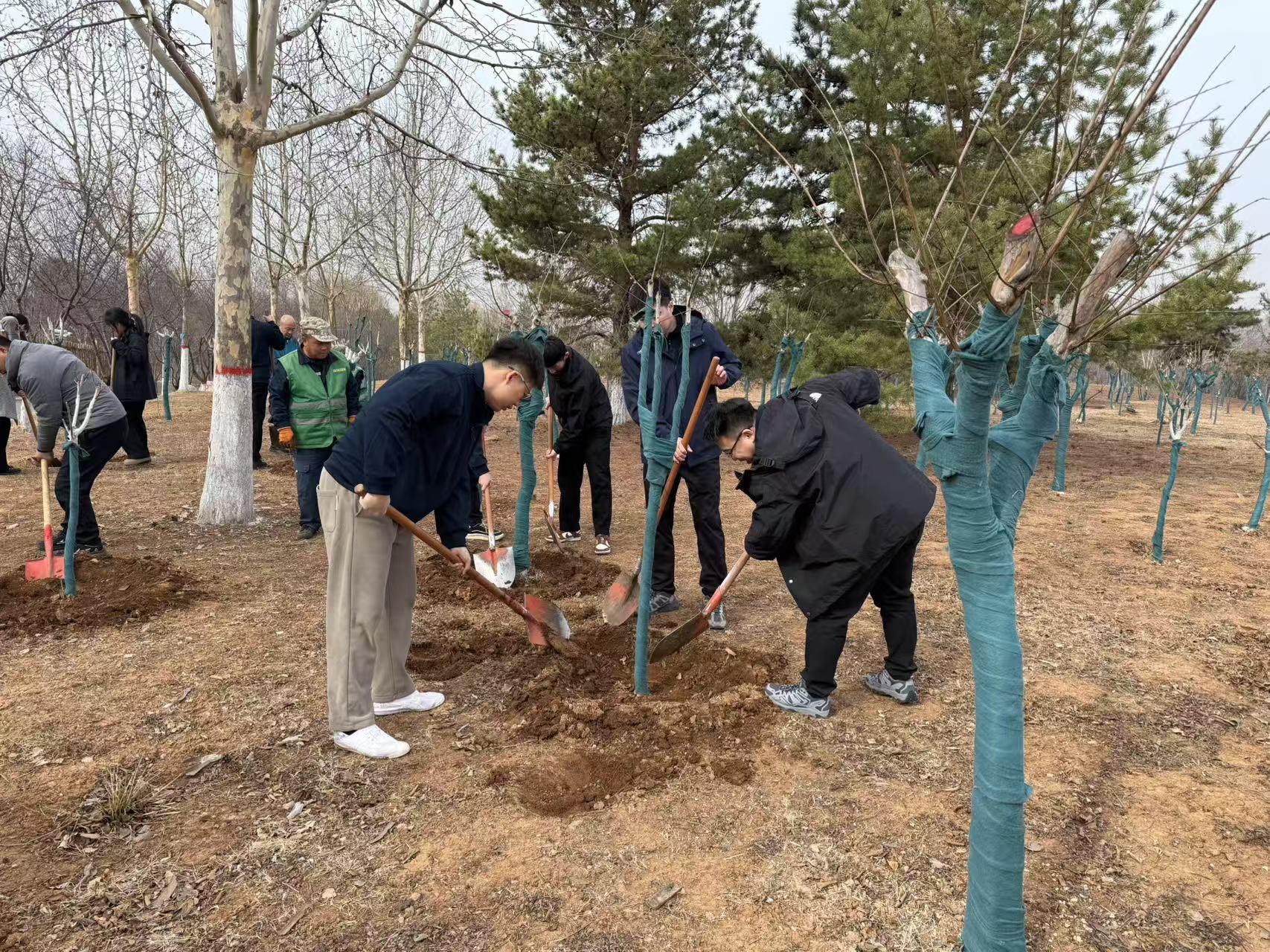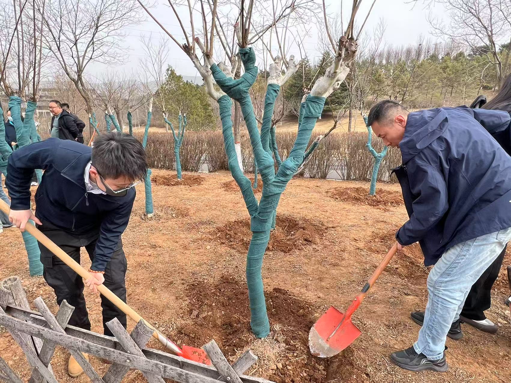 春回大地,生機勃發。為牢固樹立綠水青山就是金山銀山的綠色發展理念,提升黨員社會責任感和保護生態環境的意識。3月12日,國投公司機關黨支部、國投醫院項目管理公司黨支部和國投園林公司在白馬寺生態植物園內聯合開展“黨員樹先鋒,植樹添新綠”主題黨日活動。